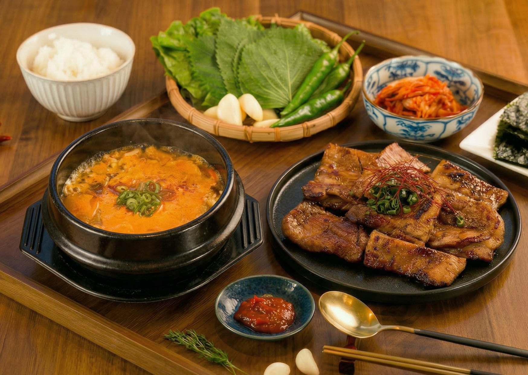 【満足定食】 30時間熟成豚カルビと旨辛キムチチゲの満足定食 キムチチゲ&豚カルビセット