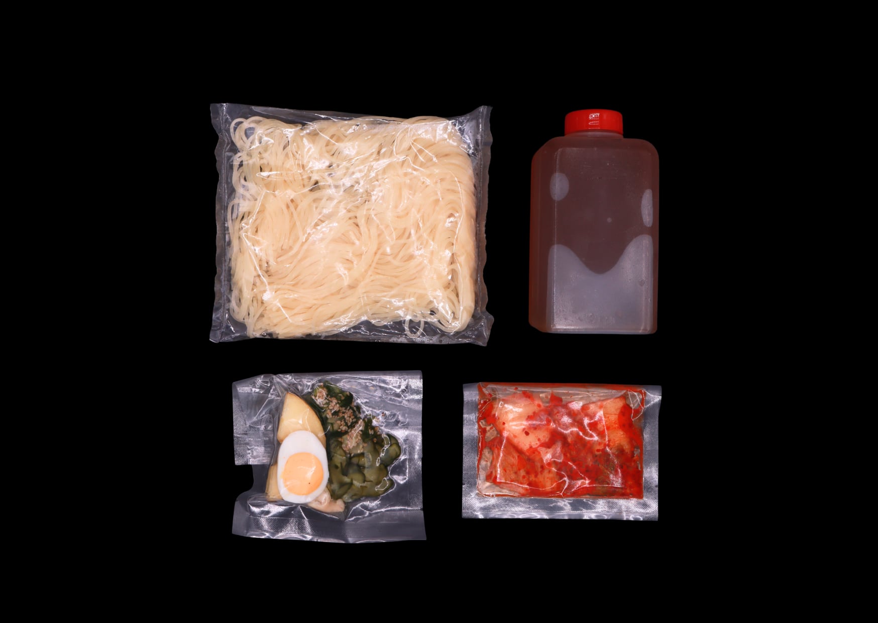 水気を切り、器に麺とスープを入れ、付属の具材を加えて完成です。